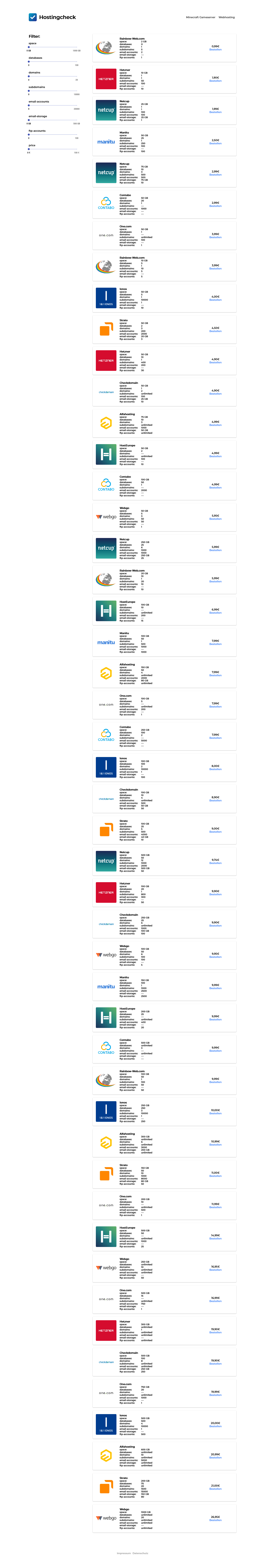 Webapp, welche es erlaubt Hosting Angebote und Anbieter zu vergleichen, zu durchsuchen und zu filtern, um das beste, günstigste Angebot passend zu individuellen Ansprüchen zu finden.