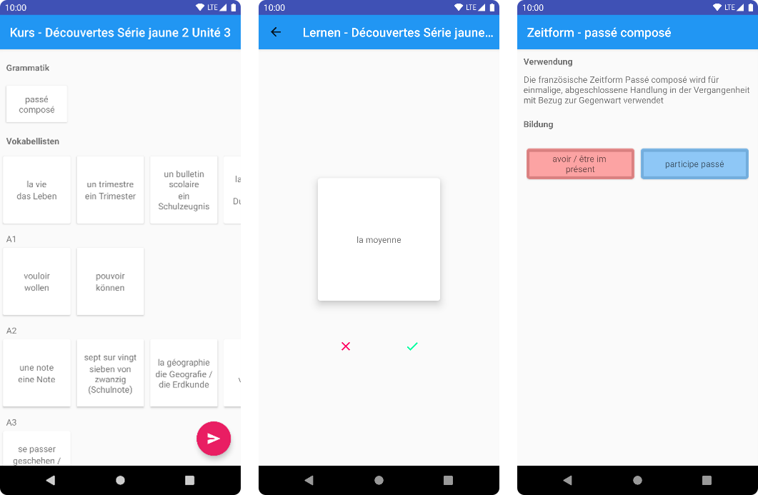 App, um Französisch Vokabeln und Grammatik zu lernen.